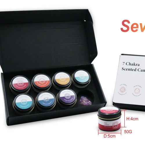 Chakra 2023 Custom Logo ODM Soy Wax Fragrance Aroma Gift Set Luxury Chakra Crystal Scented Candles